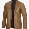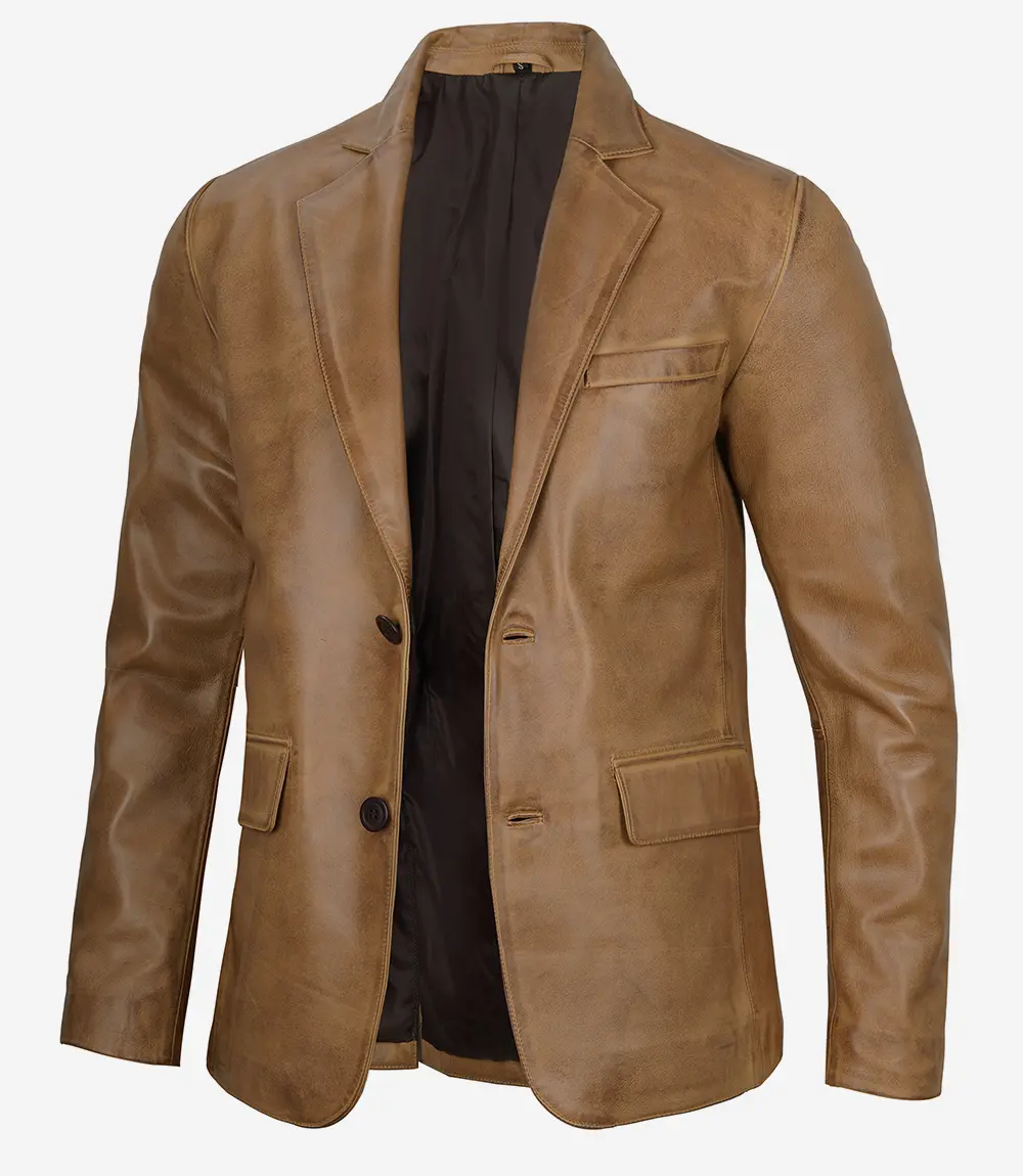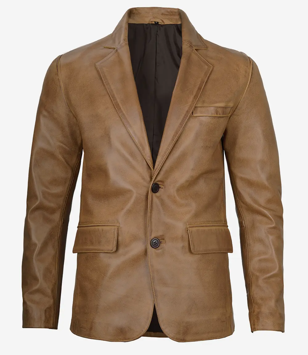 Step into effortless sophistication with the Men’s Camel Brown Leather Blazer made from high quality lambskin leather. Featuring a sleek two button design, fine detailing, and smooth inner lining, this blazer transitions seamlessly from business attire to smart casual occasions with lasting style and comfort.