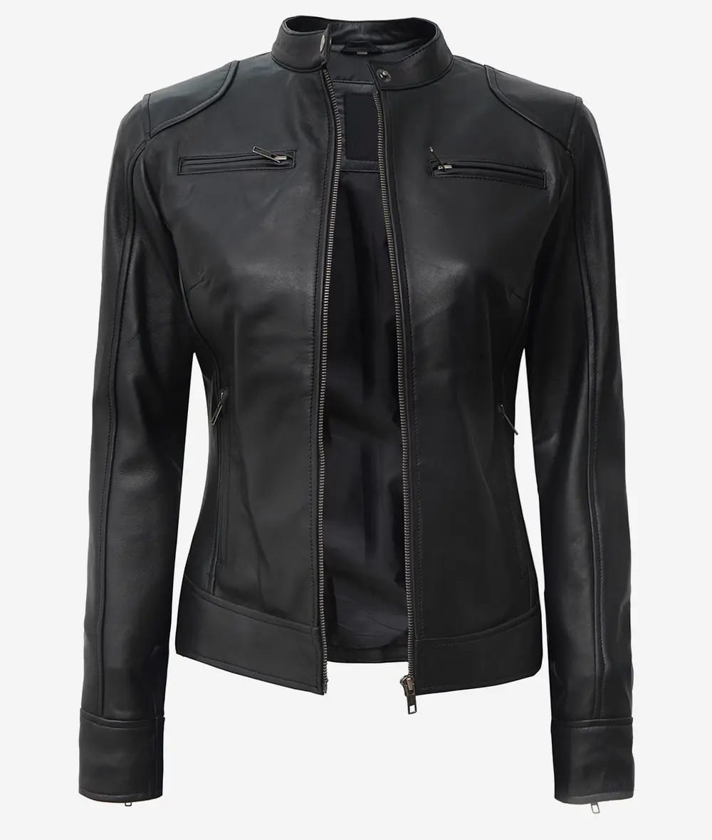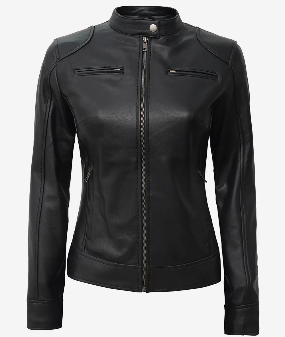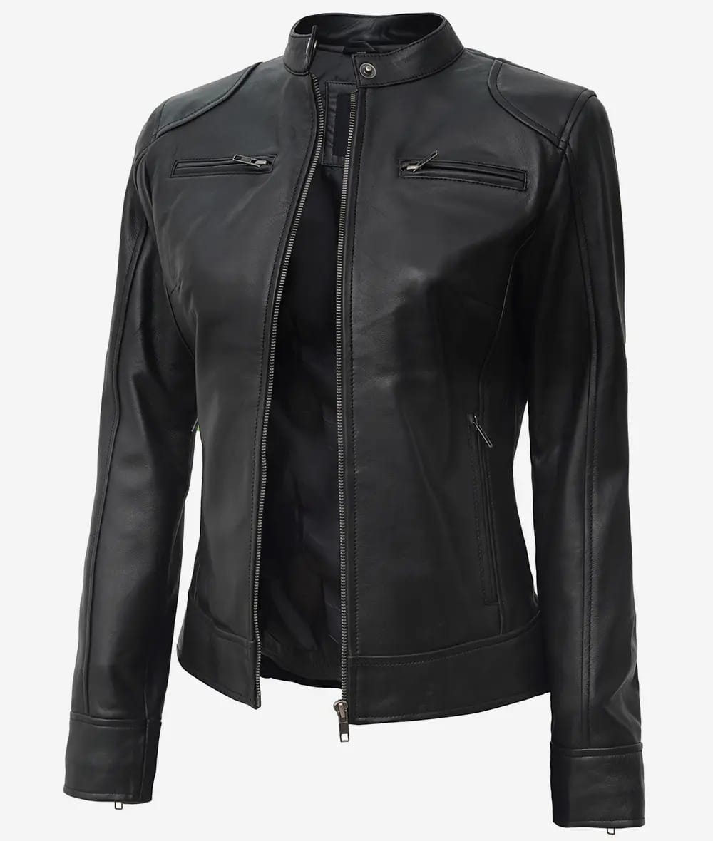 Women’s Black Lambskin Leather Biker Style Jacket