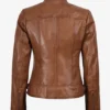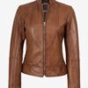 Women’s Tan Waxed Slim Fit Biker Style Leather Jacket